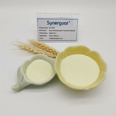 A goma de guar catiônica pode dar ao tecido propriedades mais macias, fofas e antiestáticas, pode reduzir bastante o amarelecimento do tecido branco, mas também possui excelente resistência a ácidos e álcalis e resistência a eletrólitos, é o melhor aditivo de proteção ambiental na produção de tecido amaciante.
